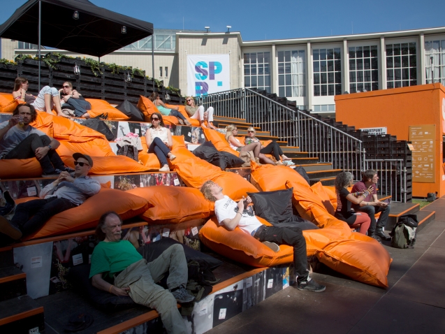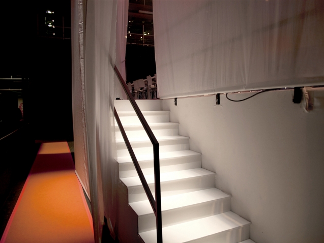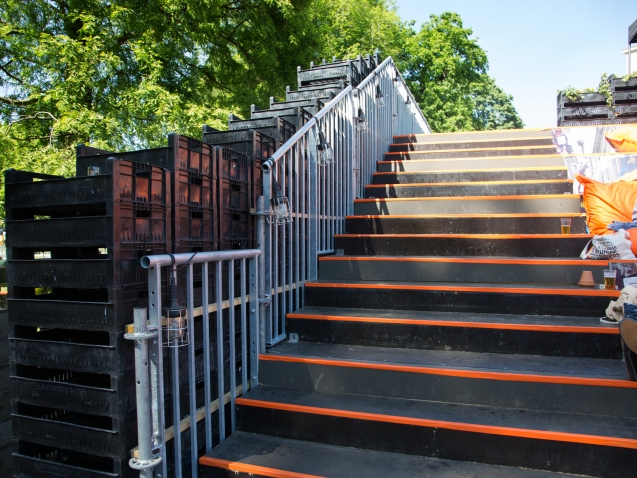 Wooden stairs are also often used at festivals, theatre performances, congresses and commercial events. Same principle, but with event decks – from plywood floorboards in an aluminum frame – is applied by the public bridges for Harbour Run.
